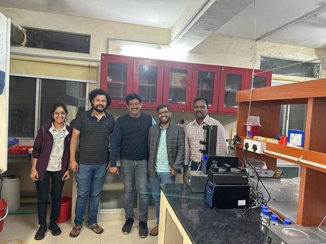 We have a lot of focus on imaging at different length scales - millimeter scale for motility tracking; microscopic regime for structure and property analysis. So, a typical day in the lab involves a lot of imaging either at the optical or fluorescence microscope or imaging using one of our semi-micro-imaging setups involving either a Precision Zoom Lens or a DSLR Macro Lens. Our Precision Zoom lens is also capable of fluorescence imaging with the help of a few band pass filters and a light source. The subjects in our experiments are microscopic compartments/droplets and we tend to program their behaviour by engineering stimuli-responsive functions and produce the stimuli locally within the microscopic compartments. So, then it becomes important to track chemical concentrations in time and across the sample space. This leads us to be interested in Spatiotemporal (space and time) analysis of chemical concentrations - which we do qualitatively using fluorescence microscope or quantitatively using a fiberoptic spectrometer. Interfacial tension plays a very important role at microscopic length scales and we like to measure it in different ways based on the system under investigation - either by using a drop shape analyzer which can by using various models infer the surface/interfacial tension and surface free energy; or by using microparticles as rheological probes to undertand viscosity of our samples.